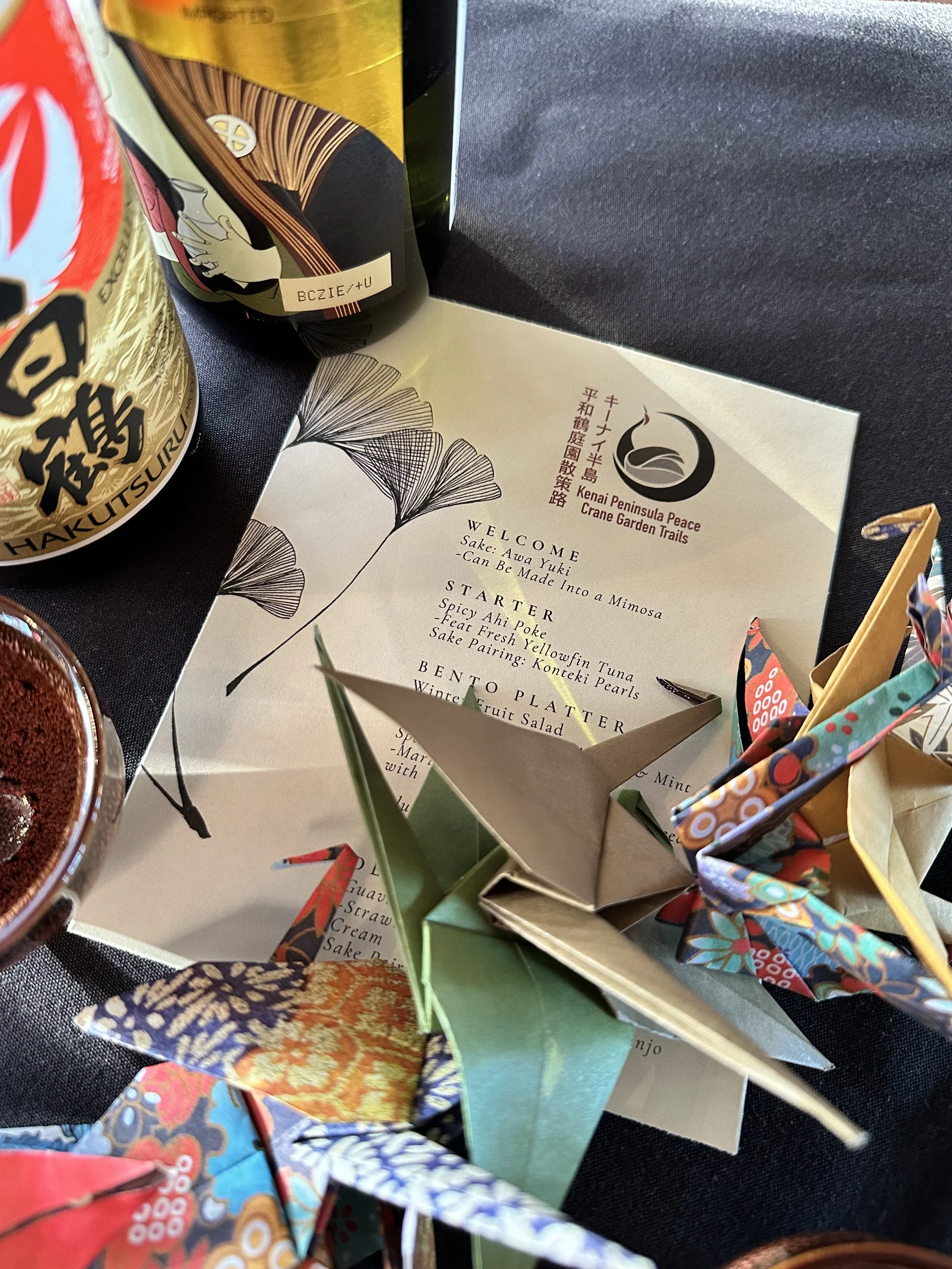 Join the Peace Crane Garden Trail for a night of Frosted Bites & Lights, featuring specialty cocktails, appetizers, and origami workshops with Flossie Foster.